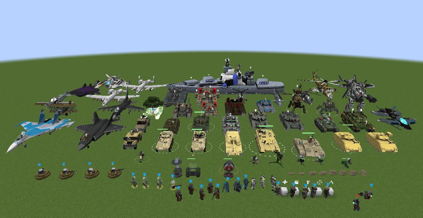 Addon featuring military vehicles designed in a style that harmonizes with vanilla Minecraft.