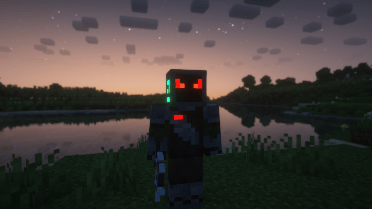 Screenshot of a Possessed Metal Person while the sun is setting.