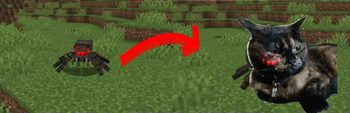 Shows a normal spider compared to the new cats added by the mod.