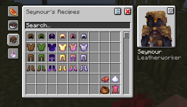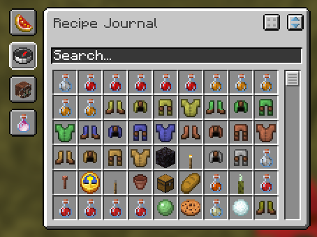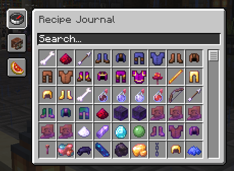 An example of search filtering in the GUI. Uses the names, NPCs, and any tooltip information