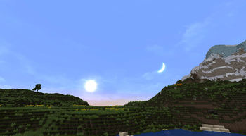The moon and sun both visible during an early winter day at a high latitude.