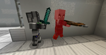 An android attacking a pillager