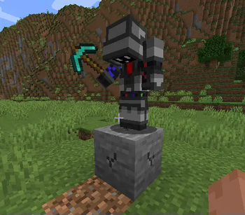 An android mining stone with a diamond pickaxe