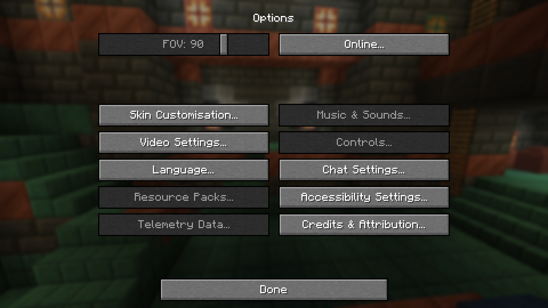 The fully disabled option menu