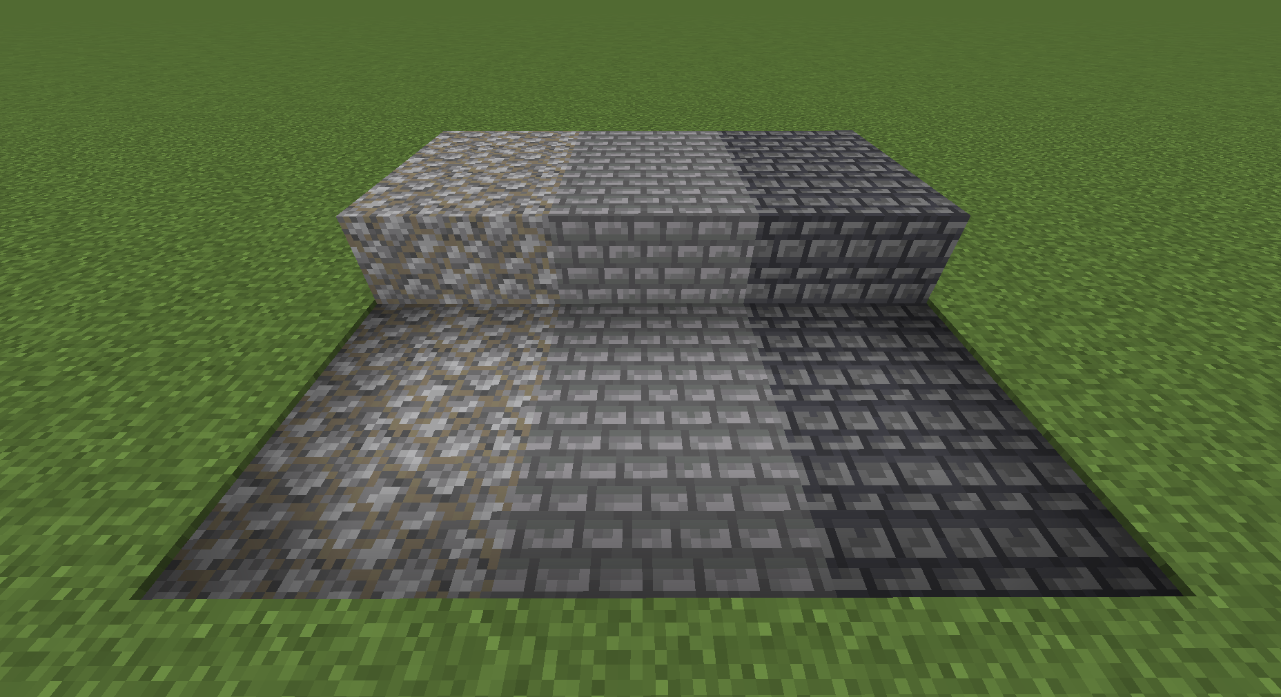 From left to right: Cobbled Path, Stone Paved Path, Deepslate Paved Path
