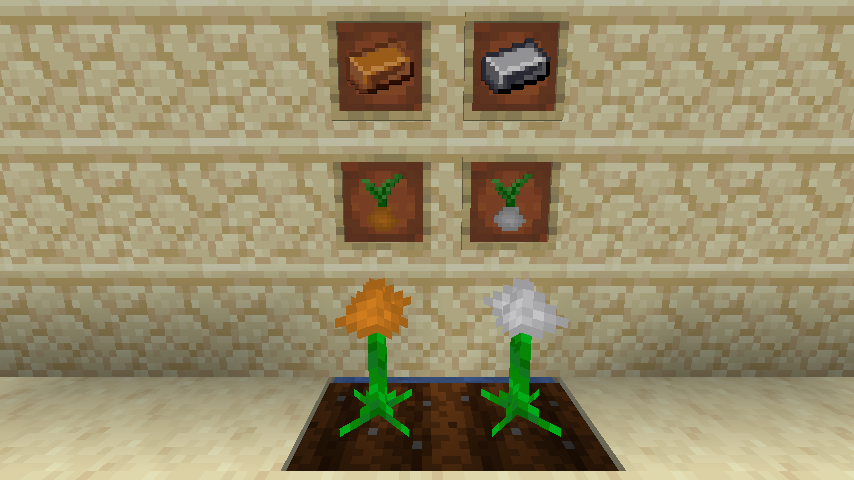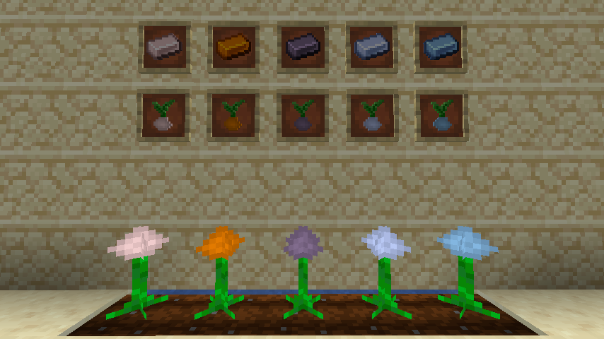 Fully grown resource plants and their drops.