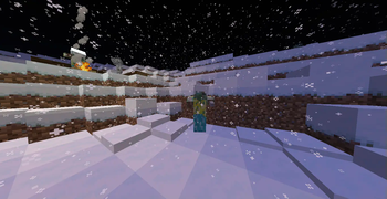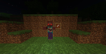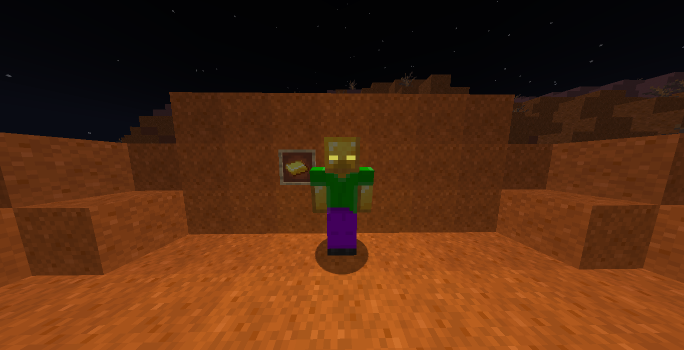 The Gilded Zombie at night in a badlands biome, next to a piece of Reinforced Golden Plating