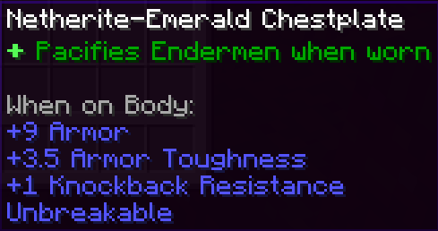 A Netherite-Emerald Chestplate from the mod "Advanced Netherite" that was made unbreakable via config