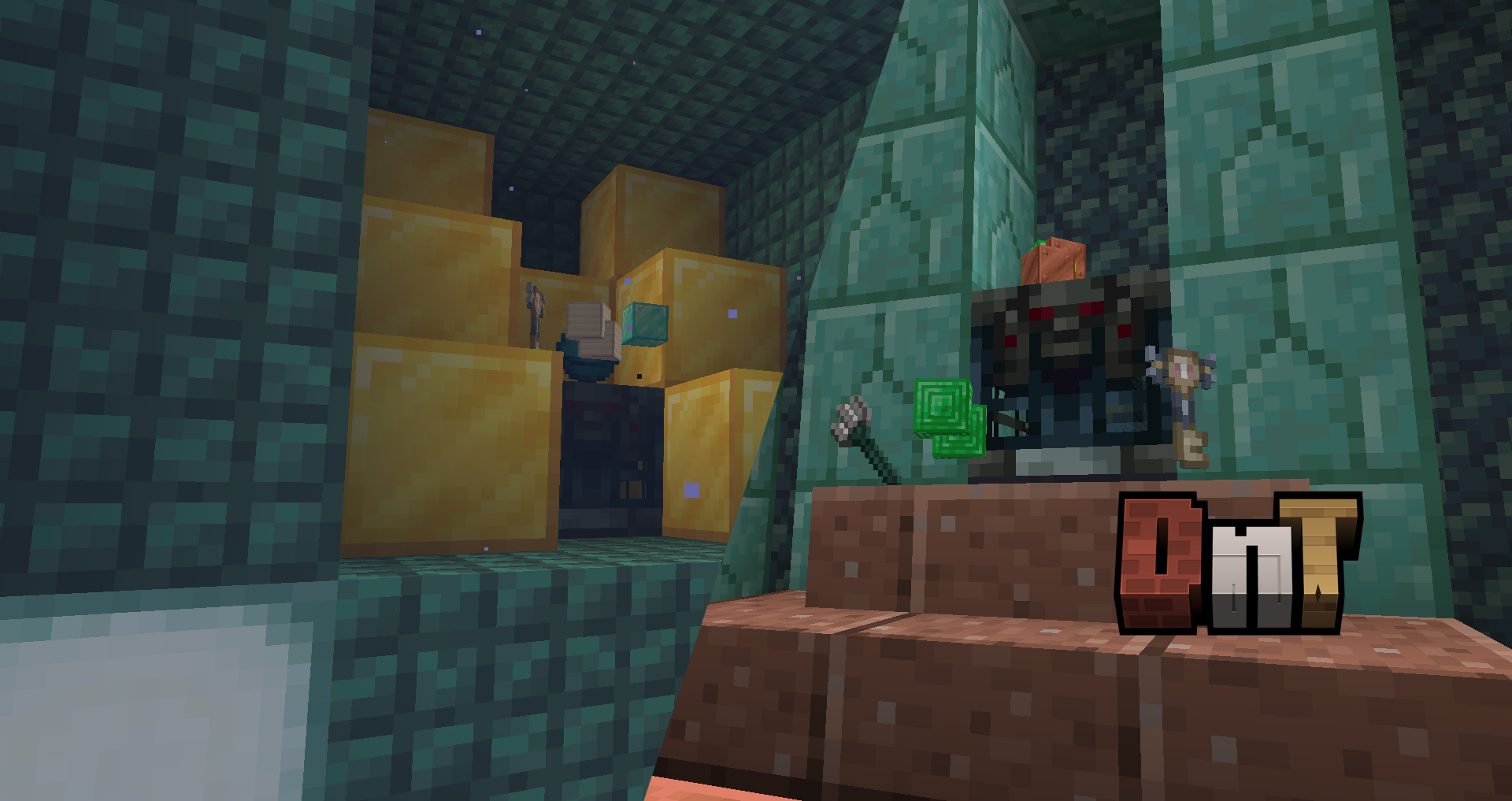 The Lower Labyrinth surounds the giant Dark Prismarine vault and is more like the ocean monument you are familiar with. The Higher Labyrinth is made out of Dark Prismarine and Oxidized Copper Bulbs wich you can light up with an axe