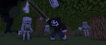 The mod adds giant animé girls that spawn during village raids and attack players and villagers. Two unique characters with varied attacks and taming capability.