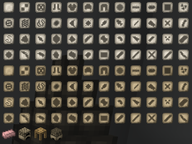 All stamps available in 1.3.1, the three blocks and the wrought iron ingot.