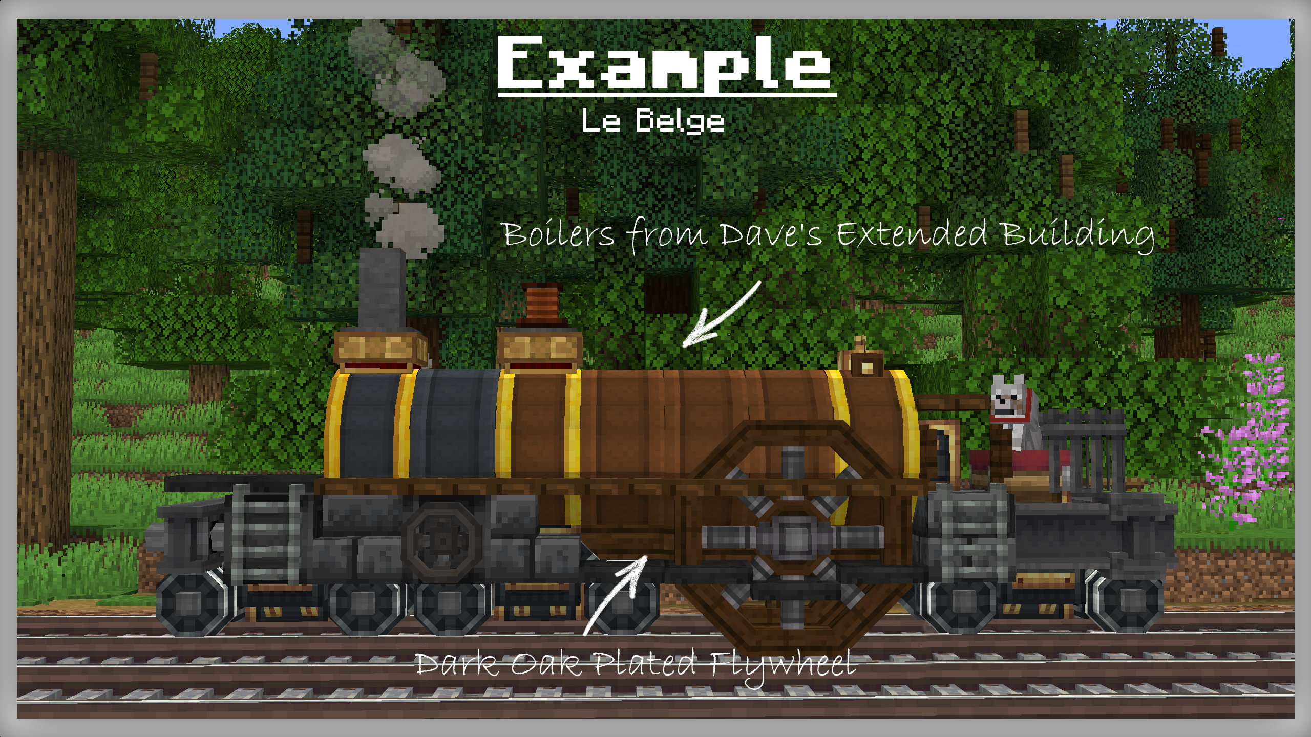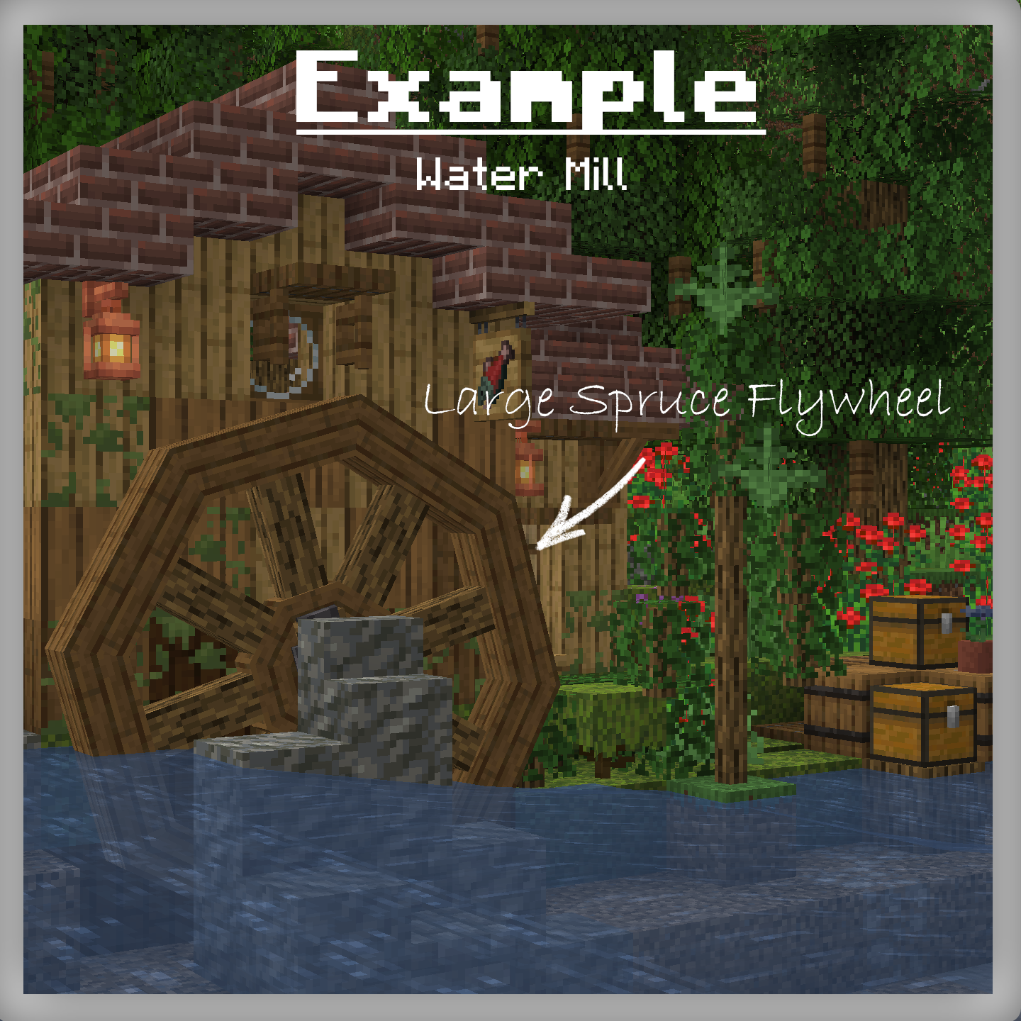 An example use of dark oak plated flywheels