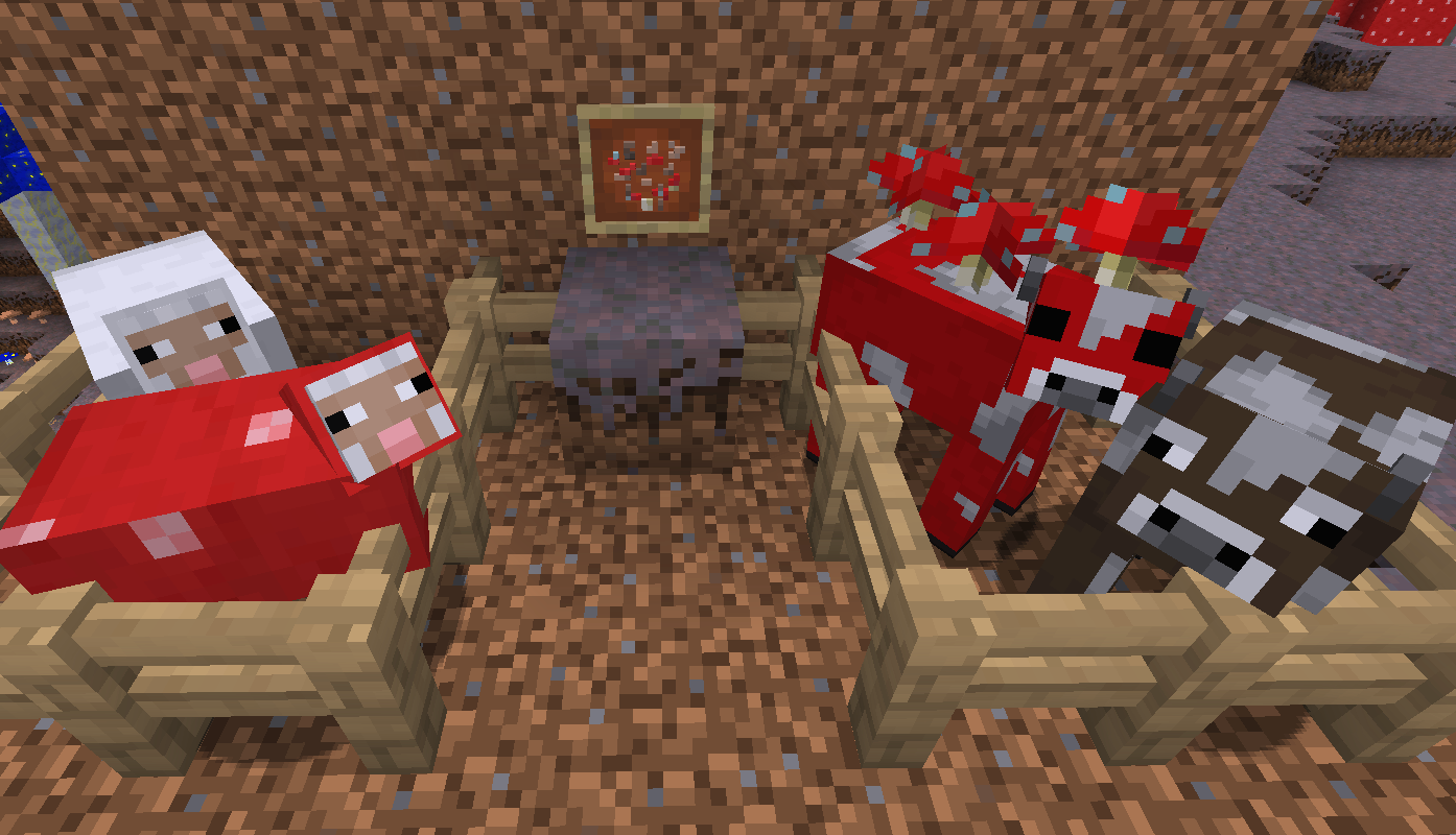 A new passive Sheep entity which has Mushroom Cap blocks as wool.