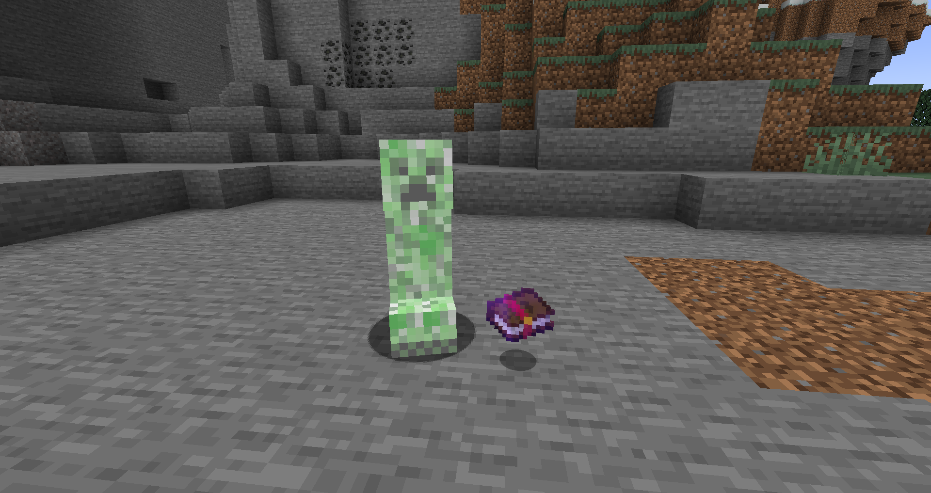 An exploding creeper standing next to and enchanted book