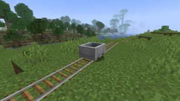 This minecart is moving quickly. Too bad you can't see it since this is an image