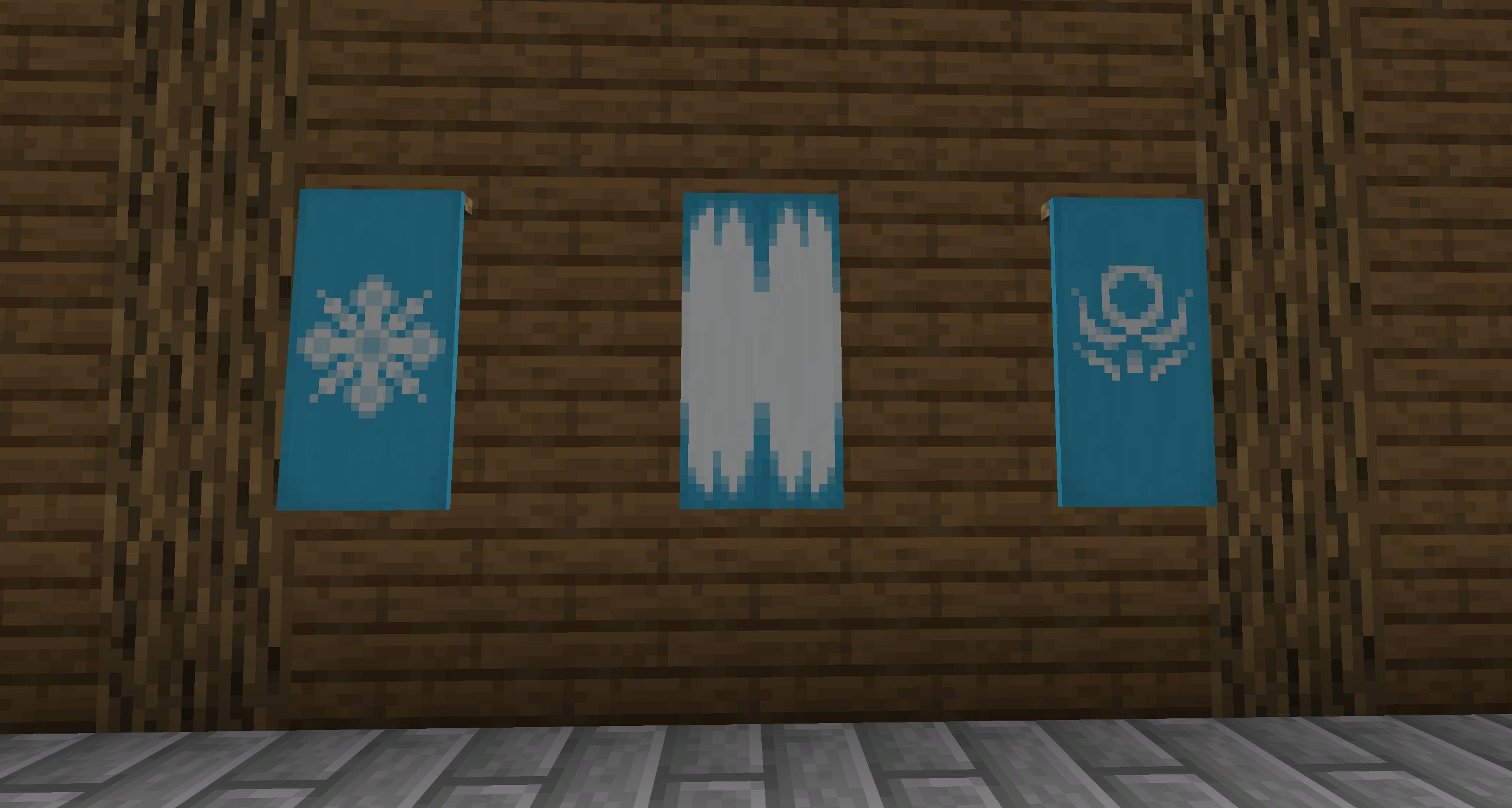 All new banner patterns added by Frostiful. Left to right: Snowflake, Icicle, Frostology