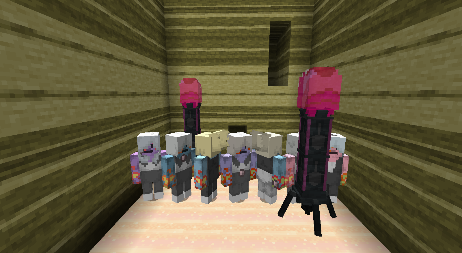 The mod adds giant animé girls that spawn during village raids and attack players and villagers. Two unique characters with varied attacks and taming capability.