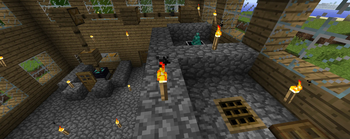 A metal forge with a source of fire below is needed to smelt iron, gold, and some other resources at high temperature
