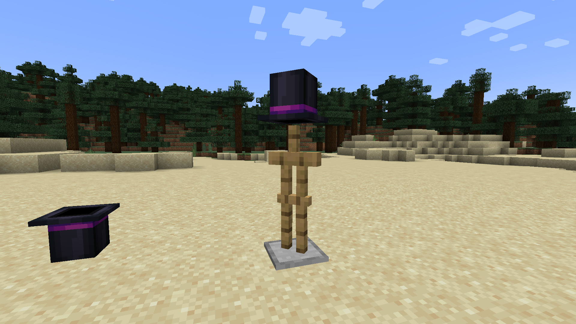 An armor stand wearing the magician's hat