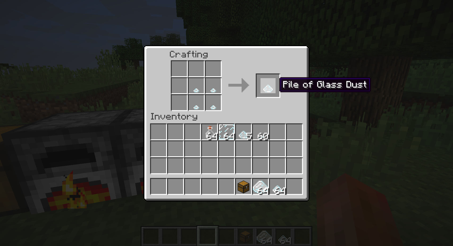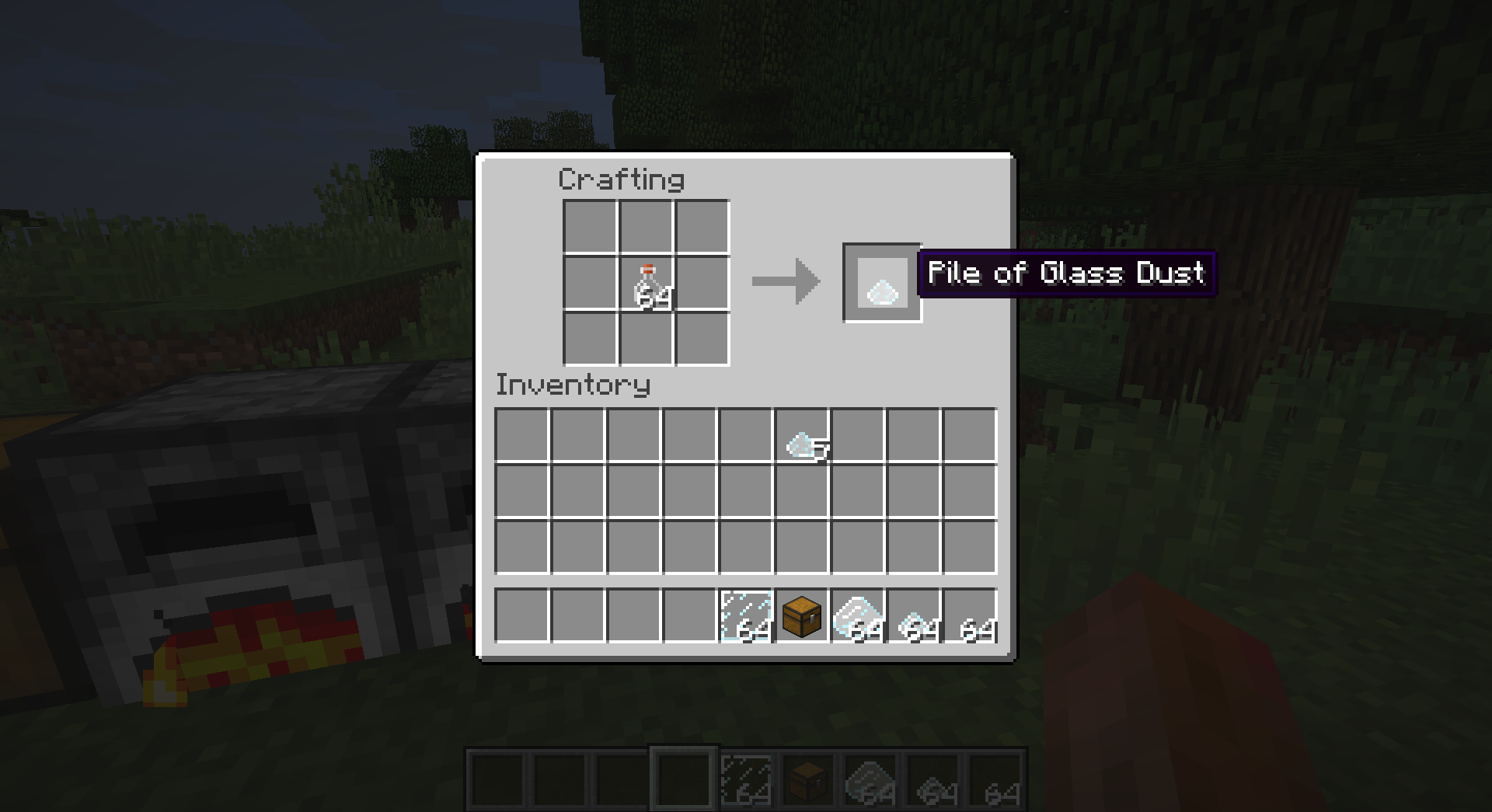 Bottles, useless as they are need a use. You can turn those thousands of glass bottles in your witch farm into piles of glass dust!