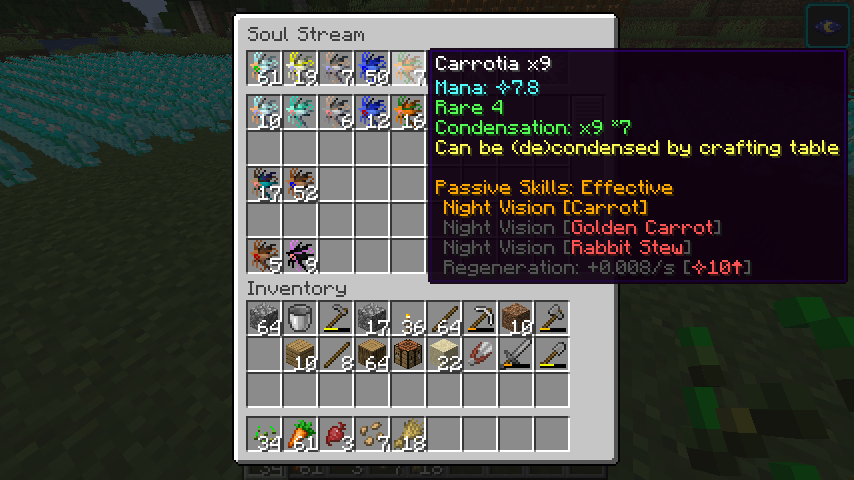 Example of passive skills of fairy that gives the player night vision if the last food eaten contains carrots