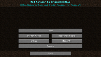 Mods (And Resource Packs, Data Packs, and Shaders) Screen!