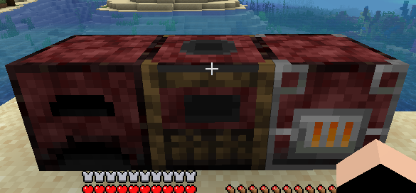 Left-to-right: Nether Furnace, Nether Smoker, Nether Blast Furnace