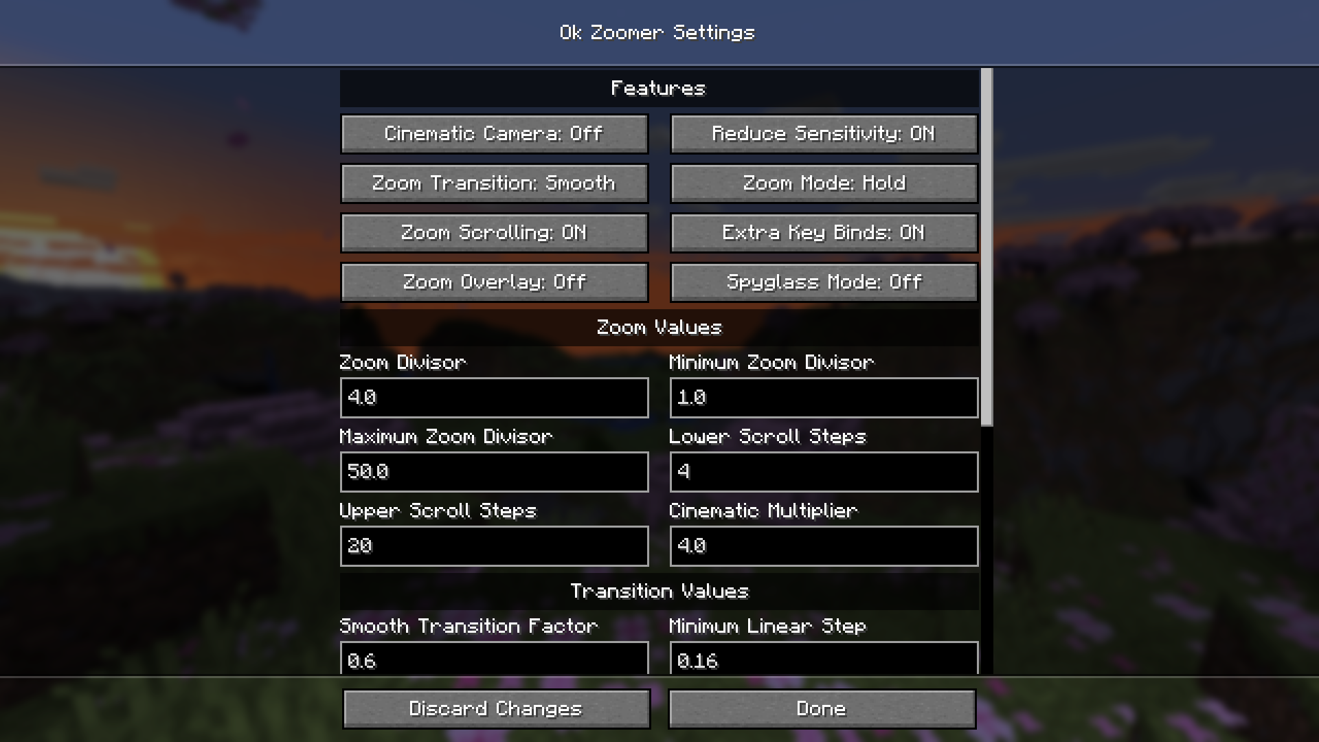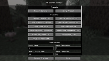 The Ok Zoomer config screen as of Ok Zoomer 8.0.0 (1.20.6).