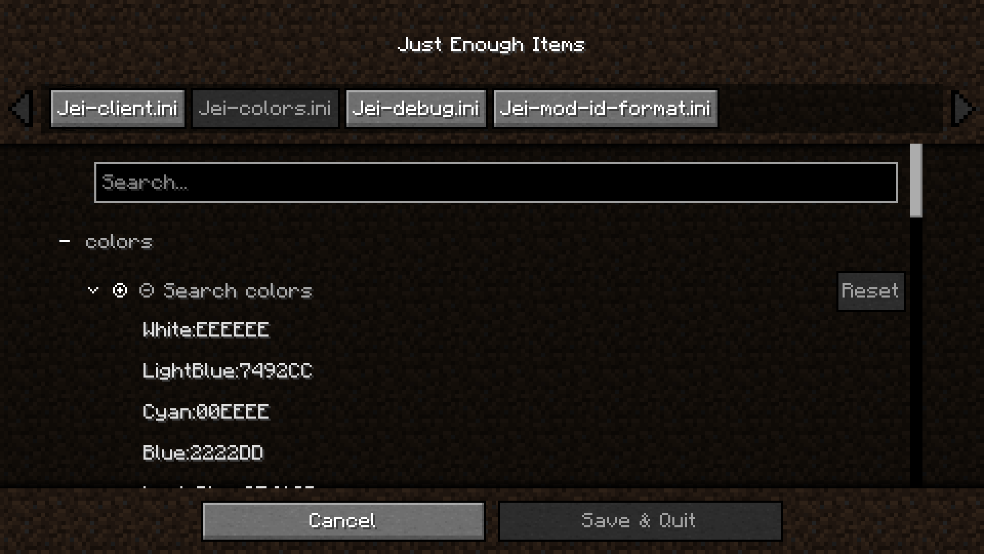 Just Enough Items has a config screen with this mod added.
