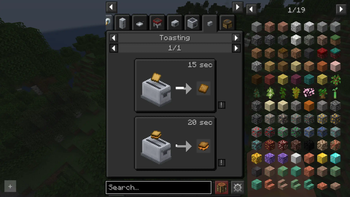 Toasting recipe open in REI, in dark mode, showing a slice of bread being toasted into toast, and a cheese sandwich being toasted as well.