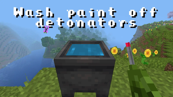Just right click cauldron with water while holding a detonator!