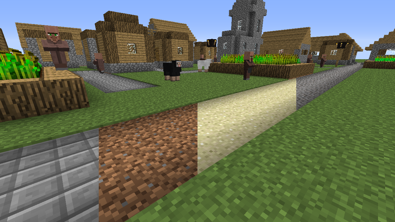 The idea for this mod came from user LupusX on Reddit, and I decided to implement it for version 1.7.10. Instead of creating yet another decorative block without practical use, I added the ability to gain speed when walking on paths. This effect works through the speed potion system and can be configured or completely disabled in the configuration files!