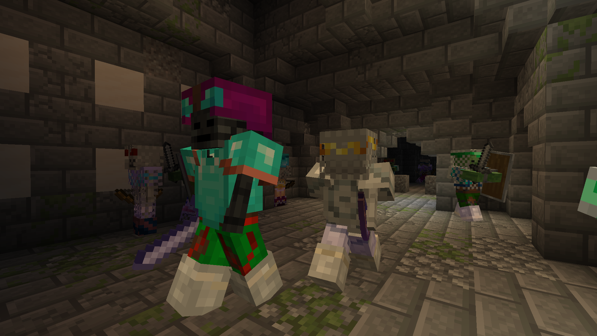 Mobs randomly equipped with modern looking gear (only from spawners in the dungeon).