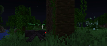 slime spider spawns in the overworld, it can emit slime ball which is sticky and poison. loot: slime ball