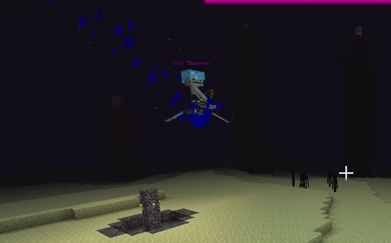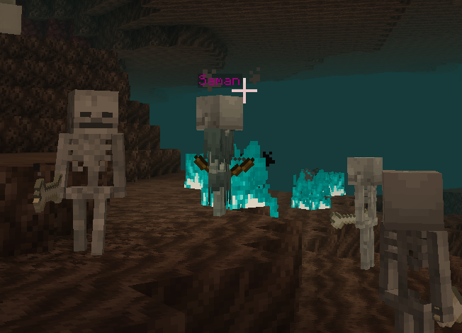 Saman spawns in soul sand valley, it can summon skeletons and use damage potions to heal the skeletons and deal damage to players loot: diamond, emerald, nether wart (1~3)