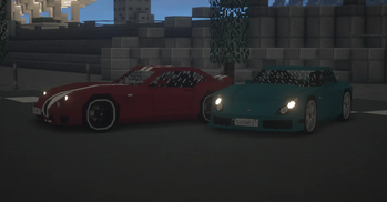 The TVR Sagaris and the Wiesmann GT MF5 beside each other.