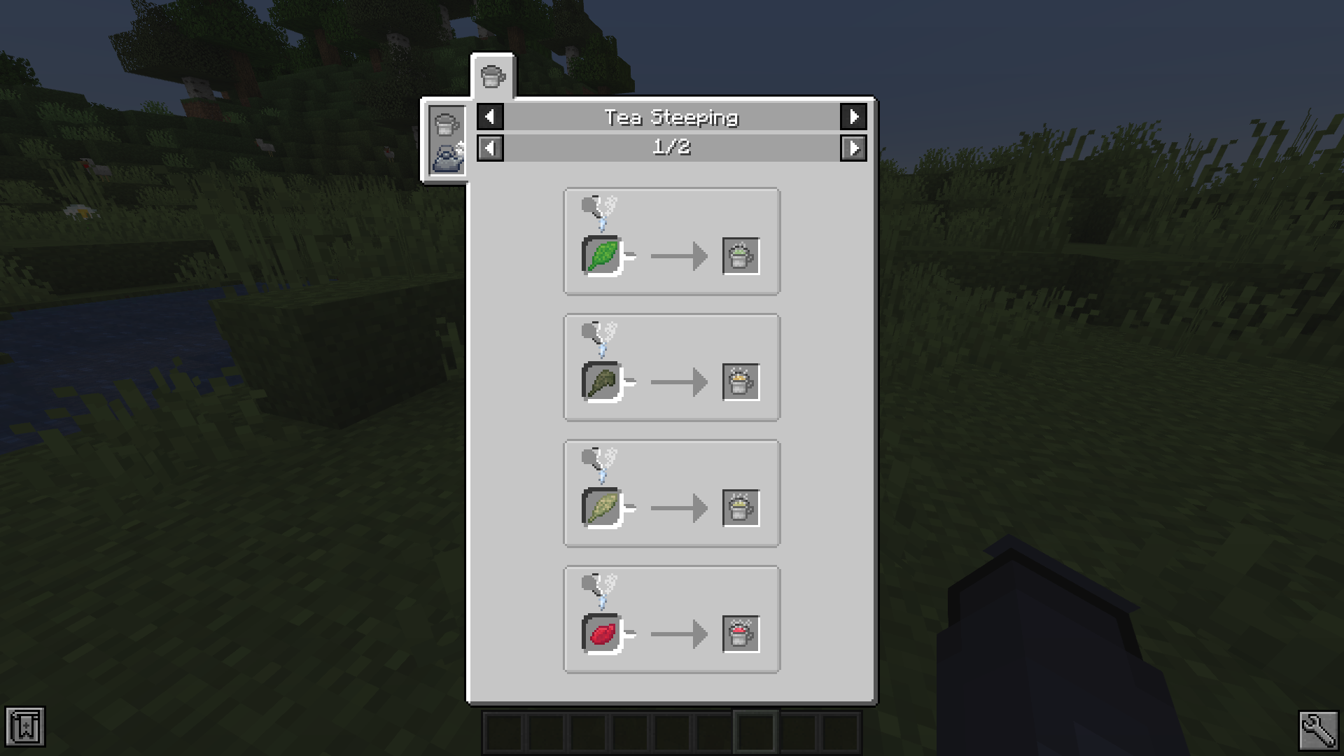 If JEI is installed, you can browse through the mod's recipes, even tea steep recipes!