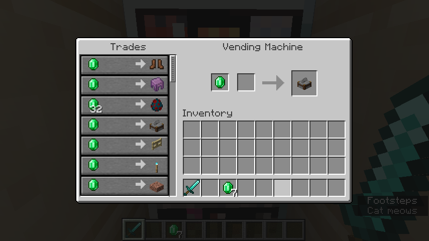 The GUI when buying an item from a vending machine