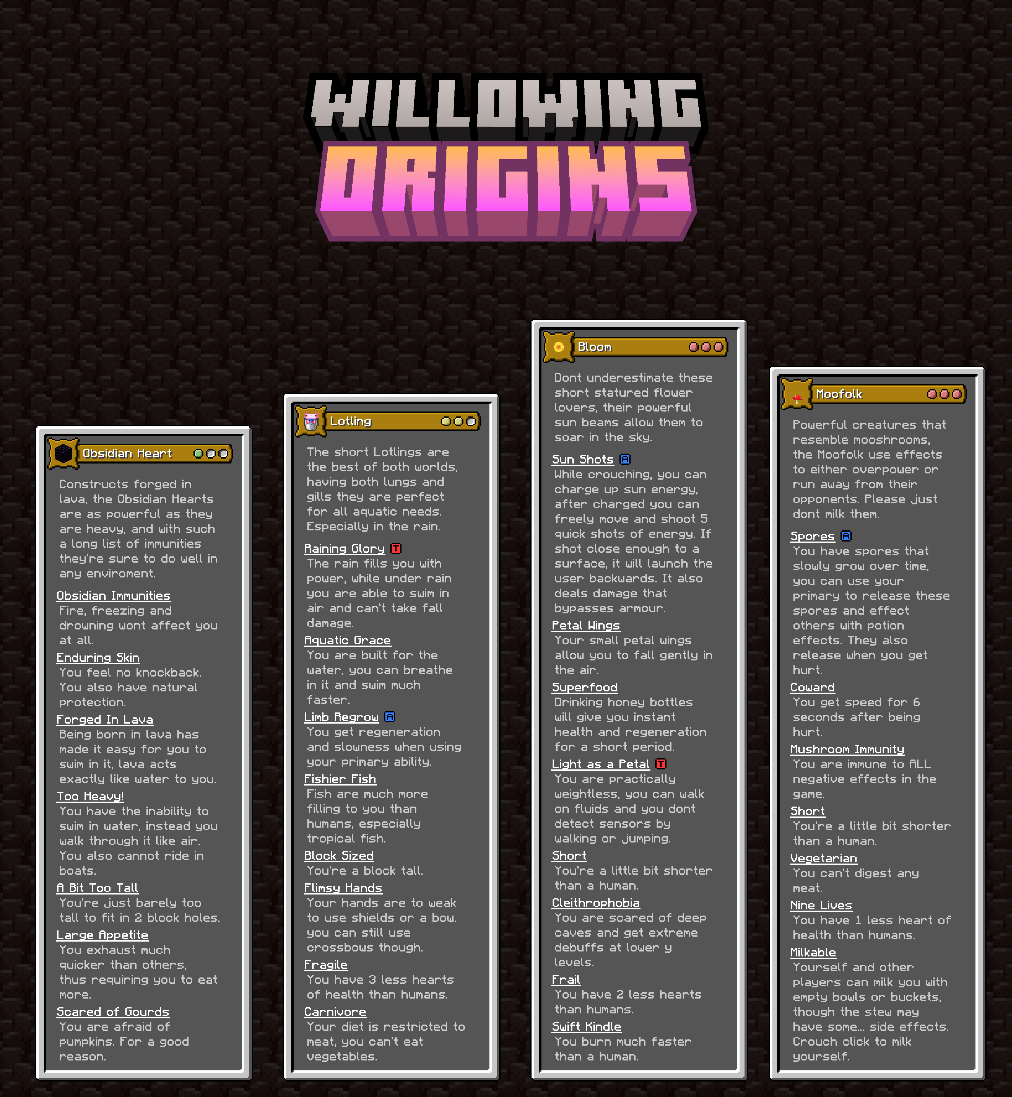 All Origins and what they do!