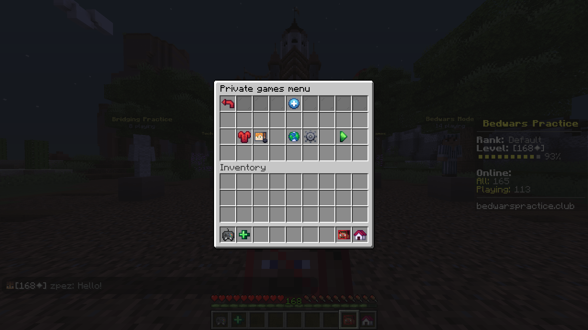 Private games menu