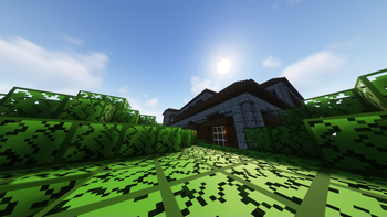 A woodland mansion at the edge of a forest, shot with complementary shaders