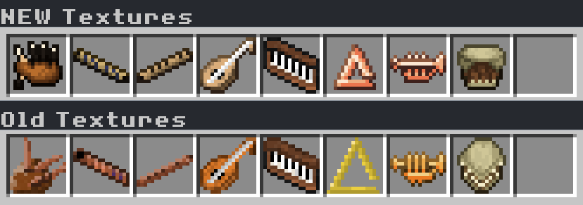 Not many models are changed, only really changed Triangle and Trumpet. Bagpipe had some texture error's that I also decided to fix.