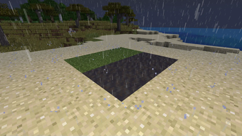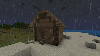 The changed rain and splash textures on a simply-built house.