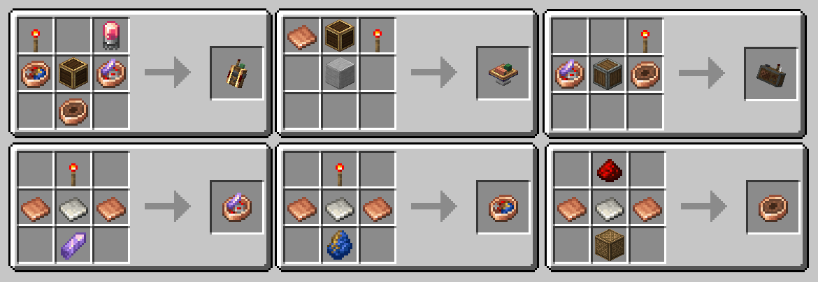 Recipes modified / added by the optional datapack in V2.0