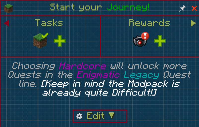 FTB Quests for Forge or Fabric is required for proper functionality.