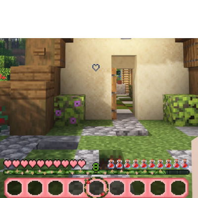 Hotbar and heart crosshair.