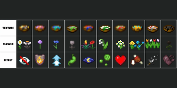 The stews with their respective flowers and effect