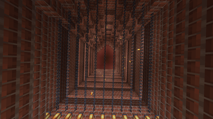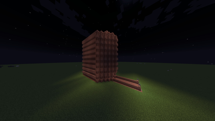 I created a unique dwelling completely made of brick with red wood elements. This structure features an unusual and memorable design that differs dramatically from standard architectural solutions.