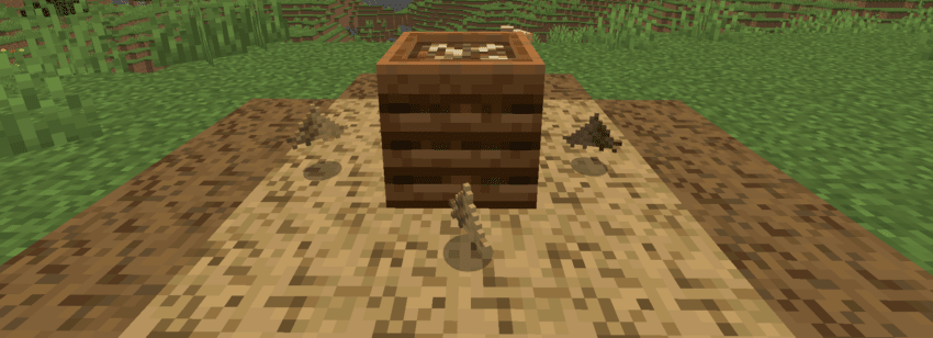 Любые деревянные блоки доски, брёвна, ступени, плиты, кнопки и даже целые лодки с сундуками можно переработать в щепу. Полученная древесная щепа отлично подходит для компостирования, давая возможность производить костную муку из деревянных отходов.