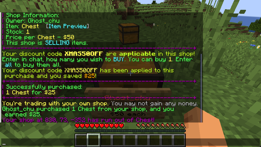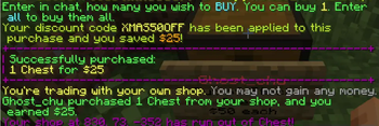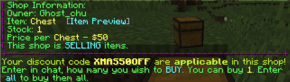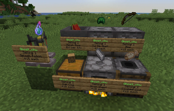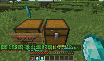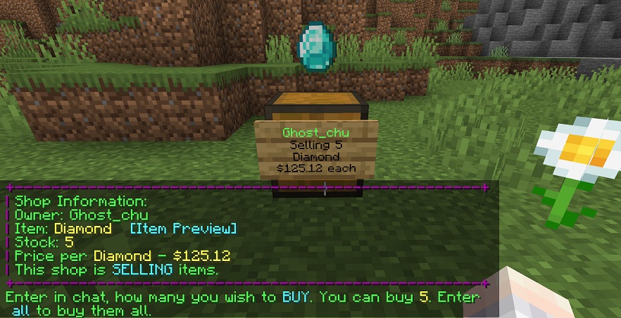 В: Можно ли создать магазин, который и продает, и покупает предметы? О: Нет, каждый магазин может только продавать или покупать. Используйте двойной сундук для двух магазинов.